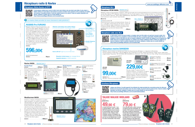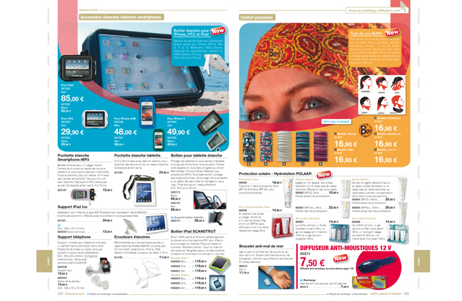 Pour le compte d'Accastillage Diffusion, la société Altavia Saint Etienne édite chaque année un catalogue de 440 pages en version française et deux catalogues de 360 pages en version espagnole et italienne.