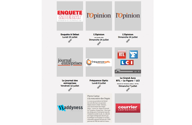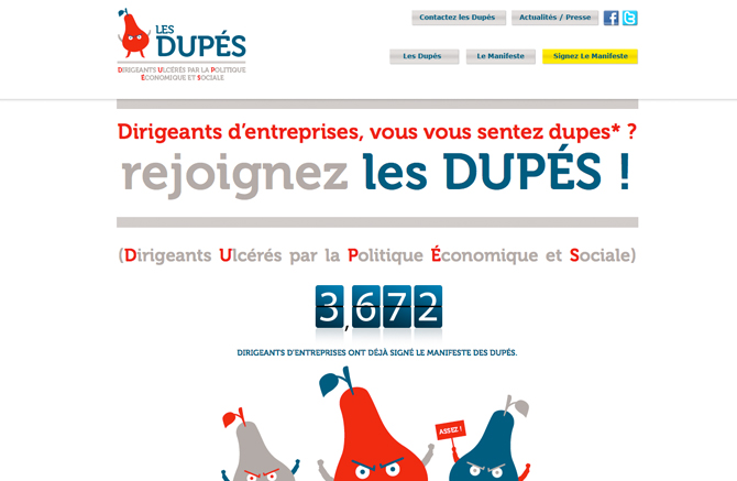 Les Dupés (Dirigeants Ulcérés par la Politique Économique et Sociale) sont des dirigeants d'entreprises basés en région Rhône-Alpes qui poussent un coup de gueule contre la politique économique qui, selon eux, part dans tous les sens ces dernières années, sans véritable stratégie.